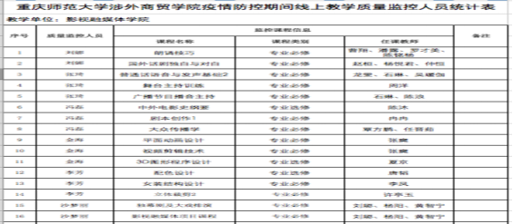 学院提前制定具体实施方案实行“督导小组制”,16名教学质量监控组成员实行分组,明确各自的督导范围,参与到各专业课程教学监控工作中,强化疫情防控时期对教学质量的监控管理。教学督导组积极参与线上教学的检查,通过课程邀请码及QQ、微信群等形式实时督察员工上课情况,以保证教学质量。