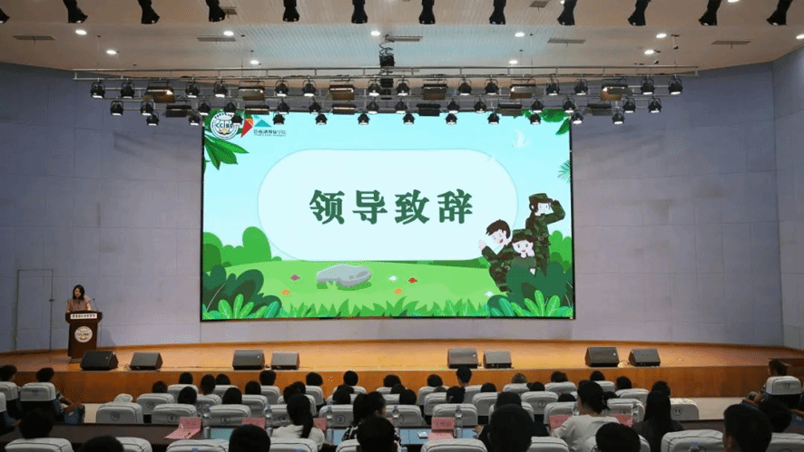 活动的第一项是王杨丽常务副经理致辞。她对教官们的辛勤付出表示了感谢,并对新生们表示慰问,鼓励他们发扬不怕苦、不怕累的精神,在军训中养成良好的行为习惯,锤炼意志品质。同时,强调军训的重要性,还向新生们提出了四点希望:一是听从指挥,锤炼意志,培养爱国情怀;二是加强团队协作,培养集体主义精神;三是关注身体状况,确保训练效果;四是将军训中学到的优良作风带入未来学习和生活,努力成为优秀的影融学子。