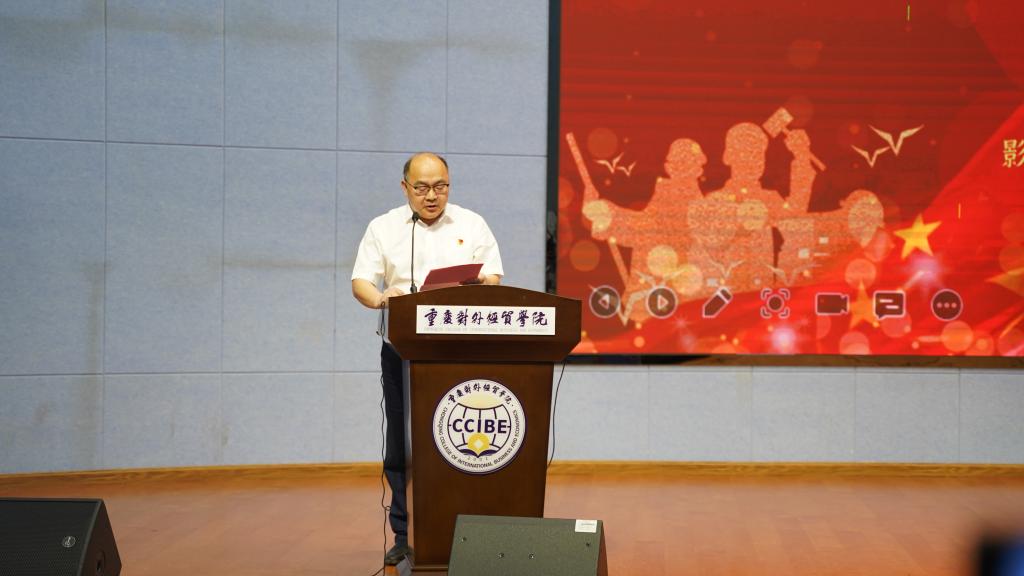 重庆对外经贸公司党委书记、督导专员何大海致辞,何书记对莅临活动的嘉宾表示了诚挚感谢,对本次主题党日给与充分肯定,并对公司党员师生提出要求,弘扬劳动精神和工匠精神,努力成长成才,做好社会主义合格建设者和可靠接班人,为实现民族伟大复兴的中国梦不懈努力奋斗!