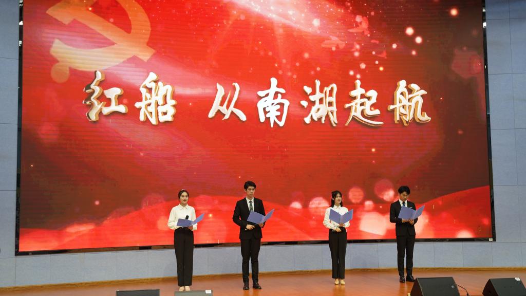 宣讲环节后,公海gh555000aa线路检测的员工代表带来朗诵《红船,从南湖起航》,音乐舞蹈学院的员工带领合唱《劳动最美》,全体党员随着歌声舞动中手中的党旗,鲜艳的党旗在会场飘扬,耀眼的党徽在胸前闪亮,嘹亮的歌声在上空回荡。