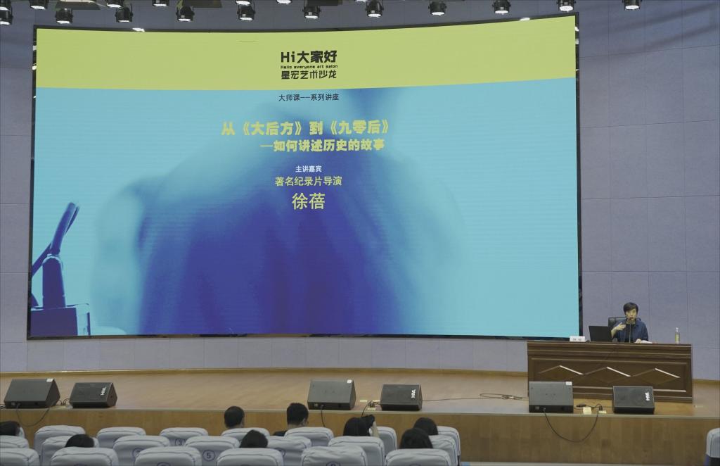 随后,她给大家带来了几段不同的纪录片片段,让老师和同学们从影片中感受纪录片的构思、创作技巧和语态,并鼓励同学们积极创作。徐蓓导演说:“热爱是最好的老师,实践是专业的积累,从三分钟到十分钟、三十分钟再到《九零后》一百分钟的创作,每一步都必须稳扎稳打、脚踏实地”。