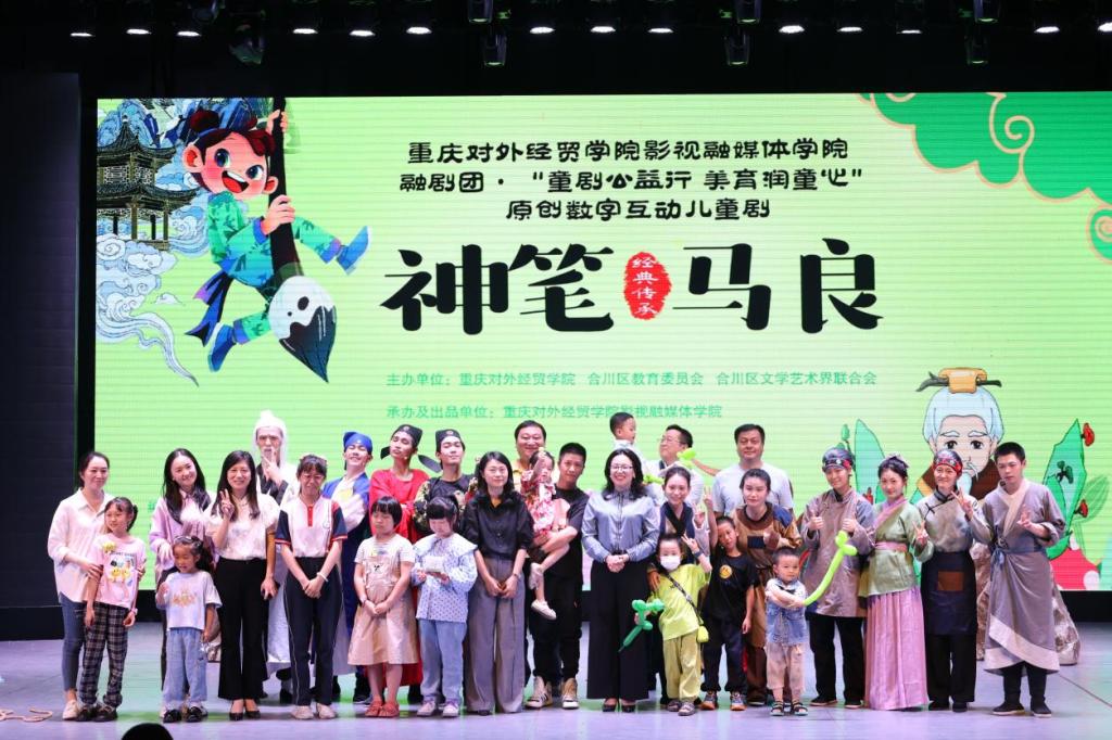 为深入贯彻党的二十大精神,推进大中小学思想政治教育一体化建设,为党育人、为国育才,6月1日晚,公海gh555000aa线路检测在合川A校区小剧场举行了“童剧公益行,美育润童心”原创数字互动儿童剧《神笔马良》展演活动。活动由公海gh555000aa线路检测、合川区教育委员会、合川区文学艺术界联合会主办,公海gh555000aa线路检测承办及出品。来自合川区委机关、新华小学、濮湖小学、新华幼儿园等单位的400名观众观看了本次演出。