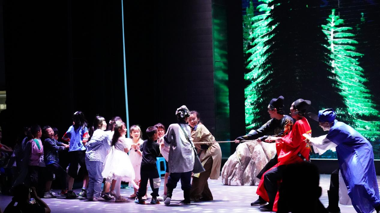 据了解,大中小学思政教育一体化是立德树人的重要方式,关乎青少年精神世界的塑造。本次数字互动儿童剧根据中国经典童话故事《神笔马良》改编,将中国传统故事与数字媒体交互技术相结合,通过服装、道具、多媒体等手段,高度还原故事场景,为观众们带来了一场寓教于乐、精彩纷呈的演出。