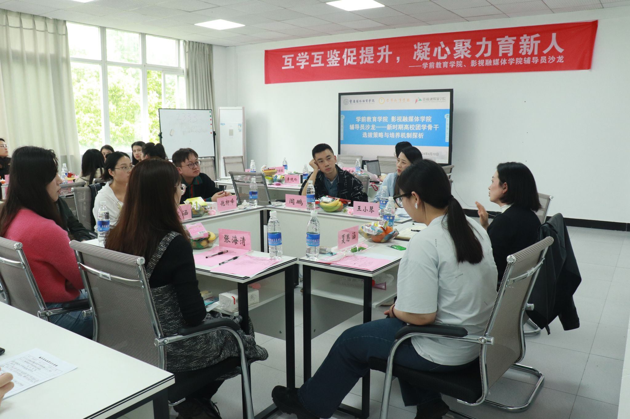 为进一步加强团学干部队伍建设,推动公司团学工作高质量发展,寻找顺应新形势的团学教育管理工作方式,4月10日下午,公司联合学前教育学院在A5403开展以新时期高校团学骨干选拔策略与培养机制探析为主题的辅导员工作沙龙。公司党总支书记周倩、学前教育公司党总支书记陶媛媛、校思政教育科科长汪嫔嫔携两院全体辅导员老师参加了本次沙龙活动。活动由学前教育学院团总支书记王小琴主持。