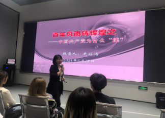 培训伊始,史书记通过团辅的方式导入课程,同学们通过语言的沟通和身体的互动,相互增进了了解,打破了原有的陌生感。接着,史书记以“百年风雨铸辉煌”为主题,讲述了中国共产党为什么“能”的三大原因。通过对知识,认知,沟通的深刻理解和应用,教会大家如何把这三大技巧运用于提高学习效率和工作技能,同时将今天学到的党史知识“内化于心,外化于行”,为大家带来了满满的干货。