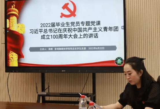 党总支书记周倩为毕业生党员在离校前集中开展专题党课,与毕业生党员一起学习《习近平总书记在庆祝共青团成立100周年大会上的重要讲话》重要精神。习近平总书记指出:青年的命运要与时代紧密相连。青年人要肩负起历史责任,要把青年人结合起来、动员起来,才能更好地发挥青年一代在实现第二个百年奋斗目标新征程中的青春力量。
