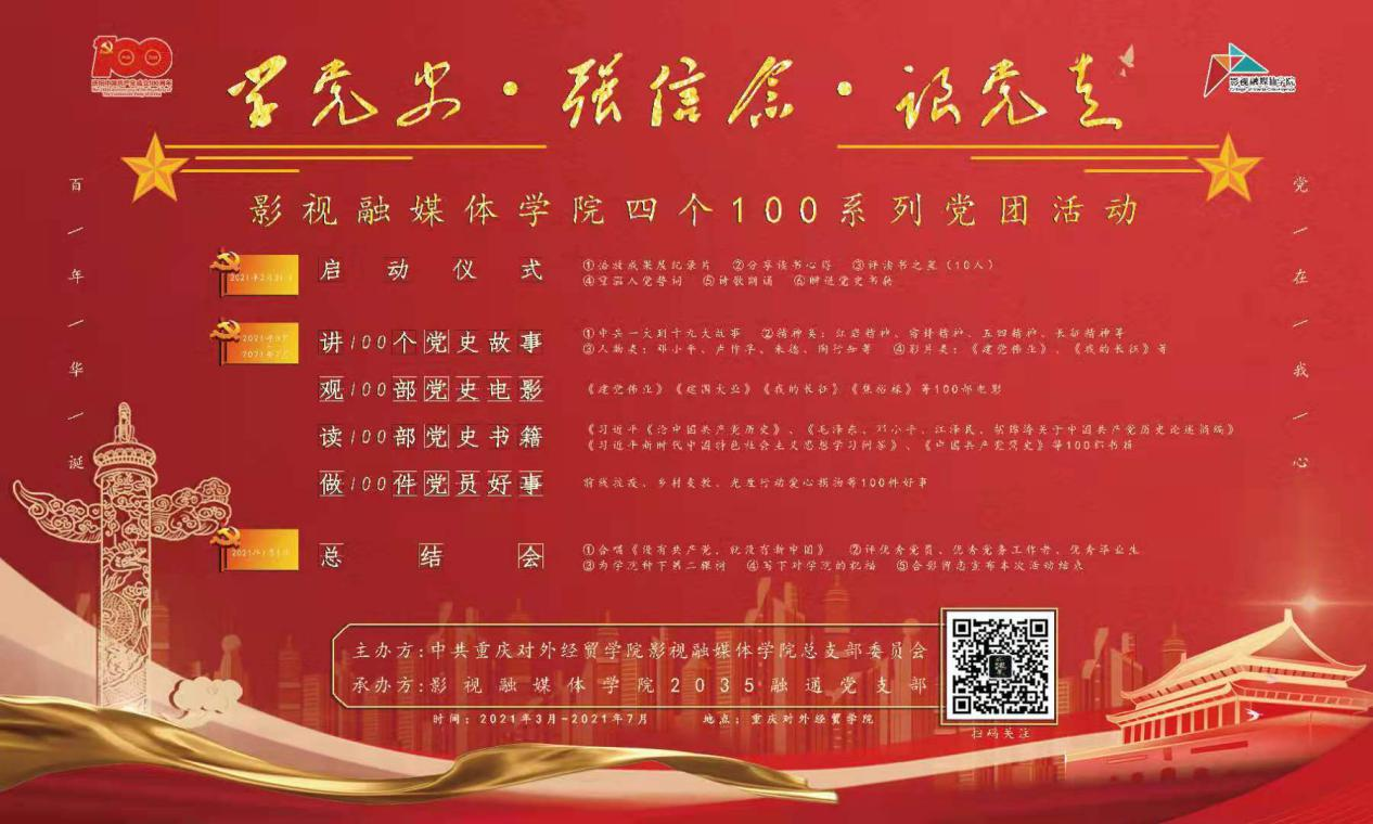 学党史·强信念·跟党走,影媒学子在行动!四个100系列党团活动将以本次启动仪式为契机,全面持续开展推进。