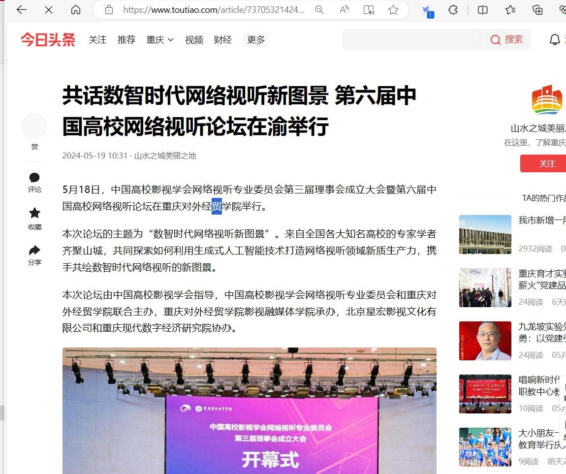 上一条:大河网:“五力”协同培育产教创数字内容创作人才 下一条:中国高校影视学会:中国高校影视学会网络视听专业委员会第三届理事会成立大会暨第六届中国高校网络视听论坛在重庆举办