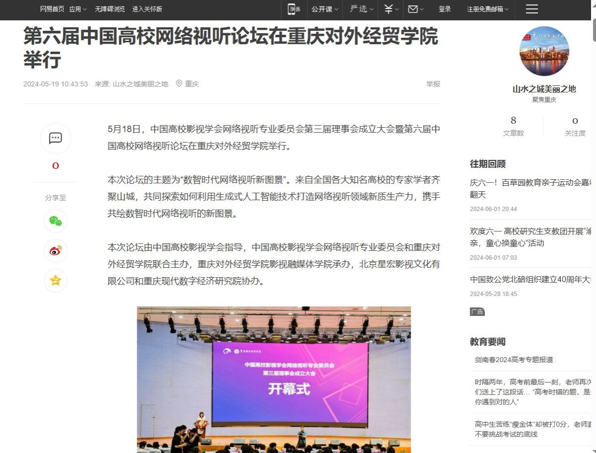 上一条:人民网:第六届中国高校网络视听论坛在重庆举办 下一条:中国新闻网:第六届中国高校网络视听论坛在重庆举办