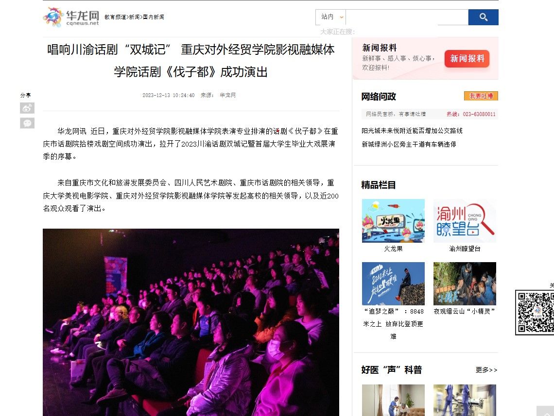 上一条:重庆日报:“回家”演出!话剧《伐子都》亮相毕业大戏展演季 下一条:华龙网:13部剧目144场演出川渝两地为艺术院校学子搭台