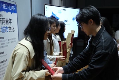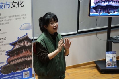 活动伊始,柴久晨同学代表小组成员就其视频作品,《外国人在合川——MARK》创作过程中遇到的问题及解决方案进行阐述,该作品全方位展示出外教老师马克于合川的生活感悟,角度新颖,别出心裁。随后,罗雅俐同学从创作构思、拍摄技巧等方面,对其小组的视频作品《小城米粉,承载一方温情》展开分享,并对合川特色米粉的文化传播领域进行着重强调。