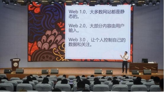 张教授向大家阐述并分析了Web3.0时代,详细讲解了当今自媒体呈现多元化和小众化的趋势。随后播放了王童、郭柯等导演的影视作品,分析了做好影片视听语言和美学的重要性,并将创作艺术作品分为“要有吸引点,让人产生视觉愉悦”;“要有所思考、情感输入”;“要令人震撼,使之付出行动”三个层次。