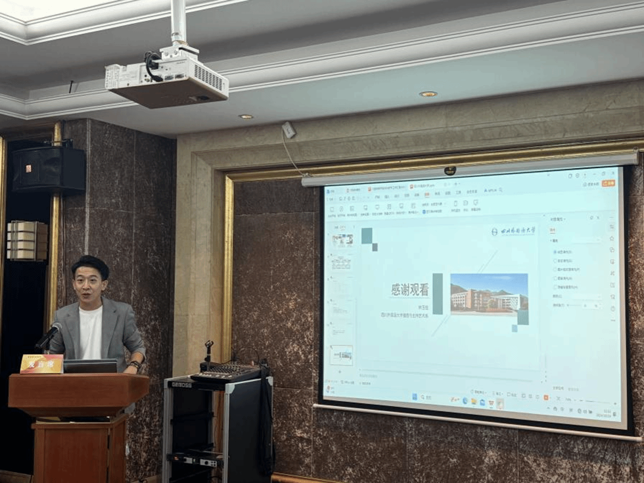 此次大会由成渝地区双城经济圈高校播音与主持艺术联盟指导,公海gh555000aa线路检测主办。来自重庆大学、四川外国语大学、成都理工大学、四川音乐学院、四川电影电视学院、长江师范学院、重庆人文科技学院、重庆外语外事学院7所高校的28位播音主持界专家学者出席了会议,学院常务副经理王杨丽、副经理张琦携播音与主持艺术教研室全体教师参加此次会议。会议由播音教研室副主任周洋主持。