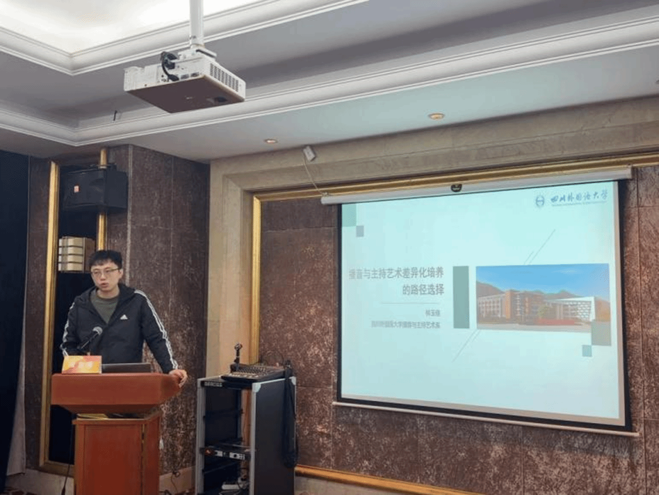 四川音乐学院传媒学院经理助理董攀围绕该学院本科公司产品的办学方向与本科定位、培养过程、教学资源与利用、团队建设、员工发展、质量保障、教学成效和自选办学特色等方面进行了分享。