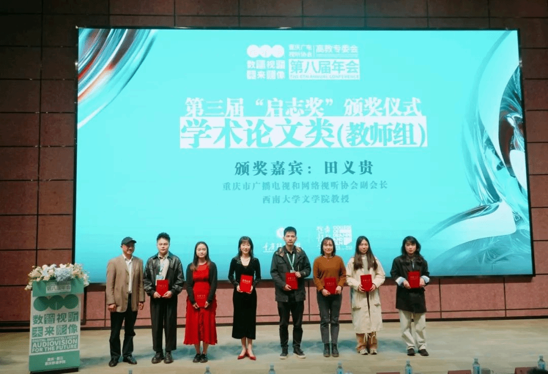 上午的开幕式现场揭晓第三届“启志奖”各类别最终获奖名单,并举行颁奖仪式。在学术论文类教师组“启志耕耘奖”评选中,学院教师陈沐、赵辰获二等奖,陈依彤、陈浪、潘露、付麟雅获三等奖,周洋、龙雯、谢霞、陈思弈、冷天泽、杨雪梅获优秀奖;在微短剧剧本、短视频评选中,来自广编、网新专业的员工团队共获9项荣誉,学院教师冉冉、陈沐获优秀指导教师奖;学院获优秀组织奖。