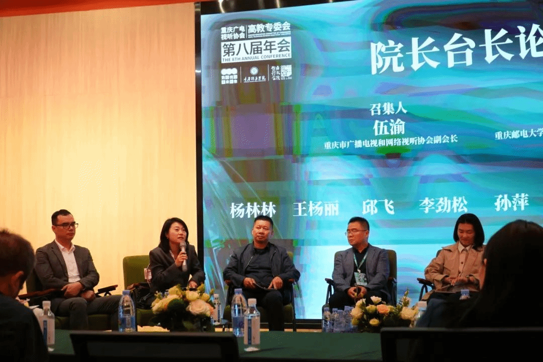 下午进行经理台长论坛。学院常务副经理王杨丽与来自綦江区、渝北区、巴南区融媒体中心主任,以及长江师范学院、重庆文理学院等传媒艺术类二级学院经理进行现场交流对话,共同探讨数智时代视听产业变革与人才培养经验。