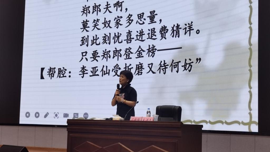 在讲座最后,沈铁梅经理为大家清唱了代表作《李亚仙》“红杏花送来满园春”的选段。余音绕梁间,引得台下连连叫好、掌声不绝,在场的所有师生们真切地、近距离地感受到了川剧文化的独特魅力。
