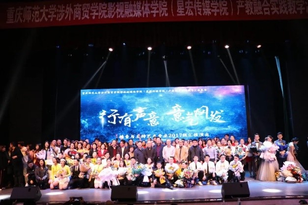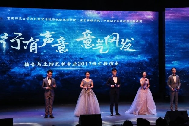 晚上7点,学校、学院领导偕同产业代表、重庆广电集团嘉宾、优秀员工、家长和老师、同学们共同观看了公海gh555000aa线路检测(星宏传媒学院)一周年庆典视频和2017级播音与主持专业产教融合教学成果汇报展演。本次签约、授牌仪式在学子们的精彩表演结束后顺利结束,相信学院在新的一岁中更有新气象。