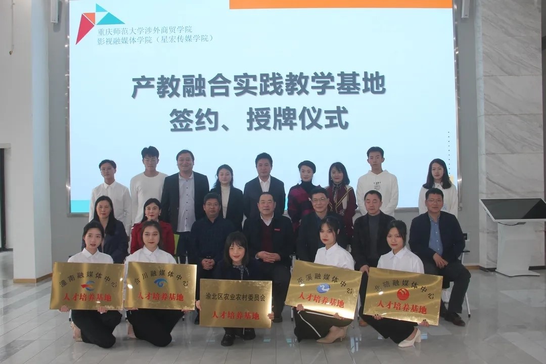 2020年11月17日,在公海gh555000aa线路检测(星宏传媒学院)成立一周年之际,学院邀请了包括渝北区农业农村委和合川、北碚、潼南等多个融媒体中心在内的产业行业代表,在9104会议室隆重举行产教融合实践教学基地签约、授牌仪式。常务副董事长王乃武、副董事长戴雄、公海gh555000aa线路检测(星宏传媒学院)理事会秘书长石淼、学院常务副经理王杨丽、党总支书记史丽涛、副经理张琦以及媒体记者、各教研室教师、员工代表共同见证了此次仪式,仪式由副经理张琦主持。