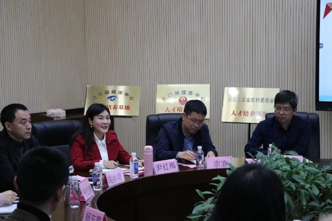 随后,渝北区农业农村委邬德品、北碚融媒体中心宗浪、合川融媒体中心尹红梅、巫溪融媒体中心马井明以及潼南融媒体中心杨红艳作为产业代表分别介绍了本单位的基本情况,一致承诺一定让员工有人带、有岗位、有所学,并提出希望优秀学子能够留下来,继续发挥自己的专业水平。