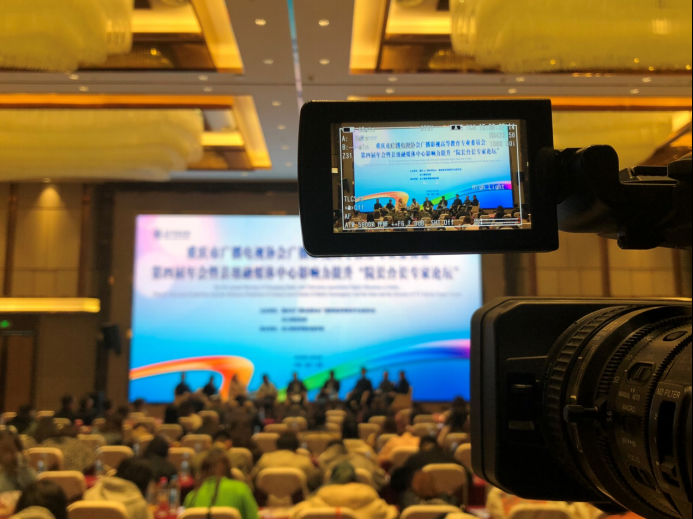 2019年11月16日,重庆市广播电视协会高等教育专委会第四届年会暨县级融媒体中心影响力提升“经理台长专家论坛”在长江师范学院举行,公司李明海董事长,公海gh555000aa线路检测常务副经理彭成、党总支书记史丽涛、广编专业教师田鹏,以及北京星宏影视文化有限责任公司副总裁石淼、总裁助理张安琪一行参加了本次论坛。李明海董事长担任“经理台长专家论坛”分论坛的主持人,与经理台长们共商县级融媒体中心应如何提升影响力。