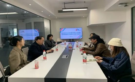 会前,公司党总支书记周倩带领大家参观了学院的文化创意传播实训中心(9103)、V3(V立方)创作集群空间,向大家介绍了学院专业设置、产教融合及校企合作基本情况和公司历届优秀毕业生典型,全方位展示了学院的办学理念和优质的公司产品环境,以及取得的各项产学研成果。