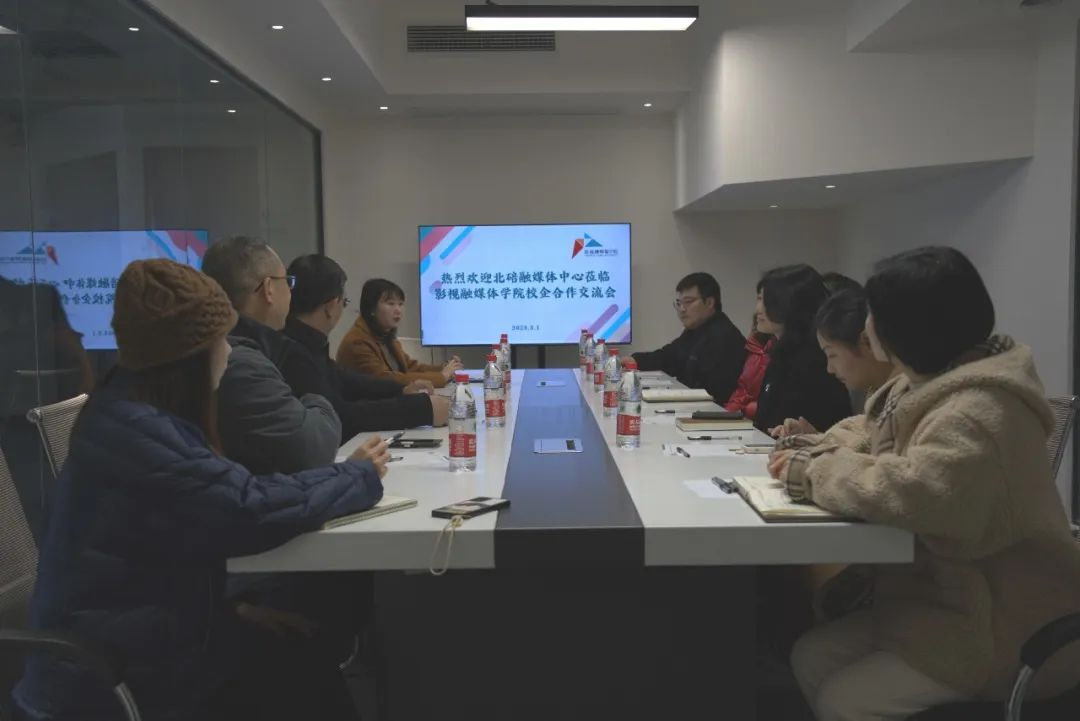 2023年3月1日下午,北碚融媒体中心党委书记胡亚明、党委副书记宗浪以及中心副主任覃政强一行四人来公司开展了校企合作洽谈与招聘活动。学院常务副经理王杨丽、党总支书记周倩、教学副经理张琦、广播电视编导和播音与艺术主持专业教研室主任、毕业班辅导员参加了本次交流活动。