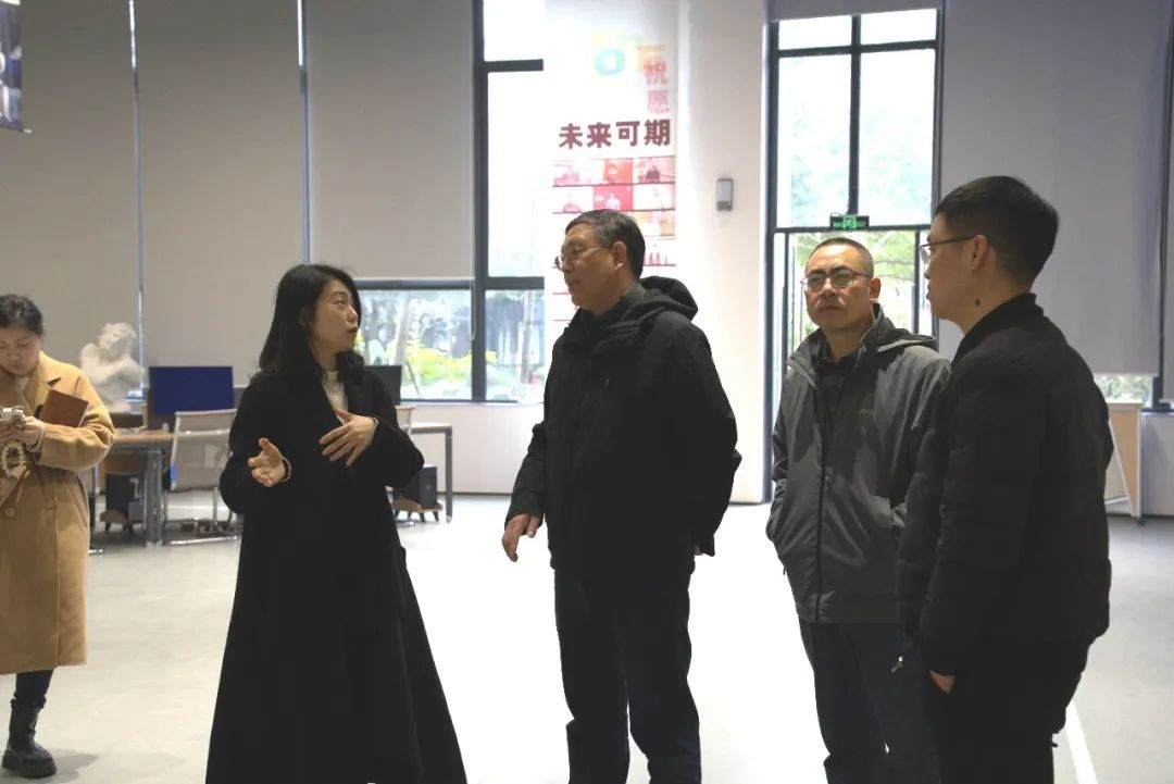 活动伊始,王经理代表学院对各位领导的到来表示热烈的欢迎,并带领大家先后参观了学院的文化创意传播实训中心(9103)、V3(V立方)创作集群空间。参观过程中,王经理向各位领导介绍了学院的专业设置、产教融合以及校企合作的基本情况,并重点介绍了公司优秀毕业生在重庆各区县融媒体中心的就业情况。