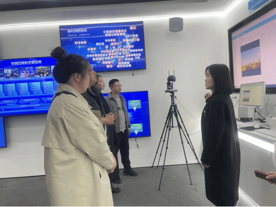 在成都华栖云科技有限公司区域市场总监李昂的带领下,公司教师分别参观、了解该公司的发展历程、产品开发、技术创新等情况。在公司走访过程中,李经理安排了公司相关专业人员介绍并演示公司的虚拟现实技术、数字AI在网络中的应用以及公司所涉的剪辑软件开发。该介绍与公司数字媒体技术、网络与新媒体、广播电视编导等相关专业员工所学课程相契合。学校始终坚持“产教融合”,以立德树人为根本任务,坚持创新推动学业课程与工作的双发展。接着张海清老师询问企业对人才的需求,并详细介绍了学院的专业特色及育人优势、学科专业设置、人才培养特色等。通过张海清老师的介绍分享,成都华栖云科技有限公司希望进一步与公司加强合作,深入探索校企合作方式,并表示愿意提供35个岗位到校开展招聘活动。