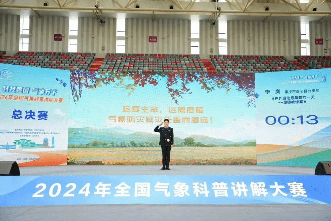 在2024年全国气象科普讲解大赛的舞台上,学院播音与主持艺术专业2024届毕业生李爽(现就职于重庆市奉节县公安局)表现卓越,大放异彩!