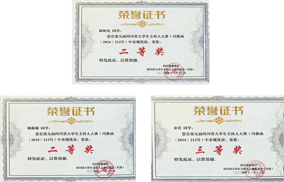 公司荣获本次比赛的“优秀组织奖”。其中,播音与主持艺术专业员工陈妍妃同学和姚琳琳同学荣获大赛“二等奖”,余若同学荣获大赛“三等奖”。