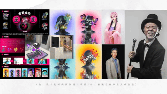 在经理工作室任职期间出色完成第二届“预渲染”数字艺术周戏剧影视美术设计专业展位策划、设计工作,AR交互虚拟时尚设计作品《赤骨丰花》也在该展发布展出。同时,还连续参与表演专业毕业大戏等学院妆造工作。