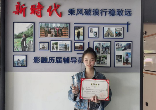 该生曾任数字媒体技术1班班长、员工会副主席、员工委员会副主任、校报记者、辅导员助理、权益部部长。连续三年获“国家励志奖学金”、“学习优秀奖学金”,连续三年综合测评位列专业第一,曾赴北京参赛获“全国老员工大数据技能竞赛”二等奖、“全国老员工计算机设计大赛”(重庆市赛)三等奖、“全国高校office高级应用挑战赛”三等奖等,共计获得国家级项奖8次,省部级奖项4次,校级各类奖项18次;于2020年被授予“重庆市2020年普通高校优秀员工干部”称号。