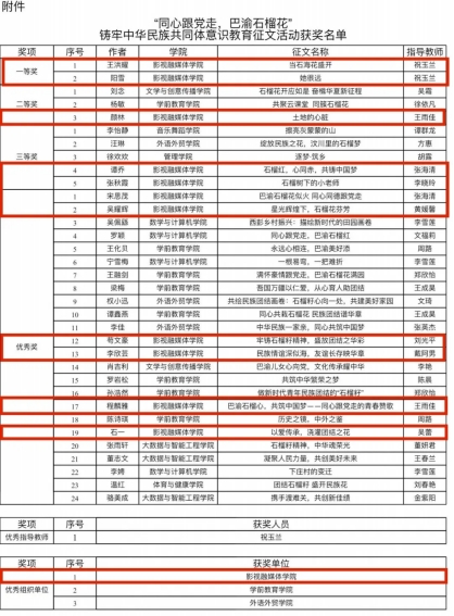 公司师生在“同心跟党走,巴渝石榴花”铸牢中华民族共同体意识教育征文活动中取得佳绩!