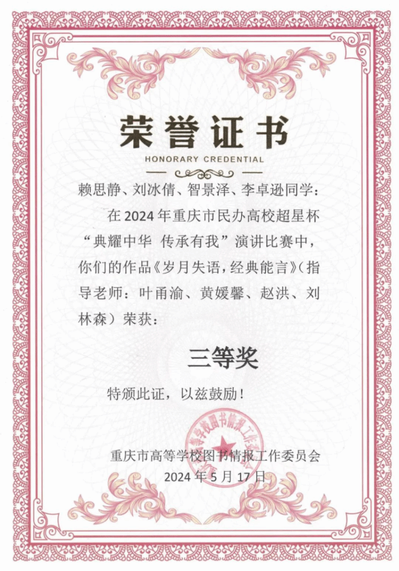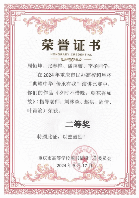 公司学子在重庆市“典耀中华,传承有我”演讲比赛决赛中取得佳绩