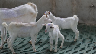 图为刚出生的白山羊羊羔