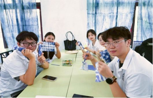 (图为实践团成员集体展蜡染作品)