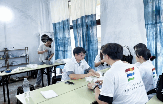 为确保实践团能够更深入地了解到当地的传统蜡染技艺,实践团邀请到了当地经验丰富的蜡染老师,讲述并教授蜡染的过程。老师详细讲解了蜡染的基本步骤,包括设计图案、熔蜡点花、浸染上色、去蜡清洗等关键环节。在其过程中,实践团了解到蜡染技术在我国已有两千多年的历史,早在秦汉时代就已出现。苗族人民在秦汉时期就已掌握了蜡染技术,并世代传承至今。