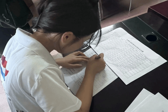 (图为实践团成员填写信息表)