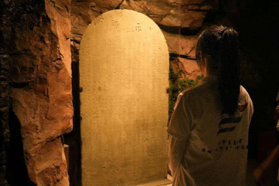 (图为实践团成员浏览石碑)