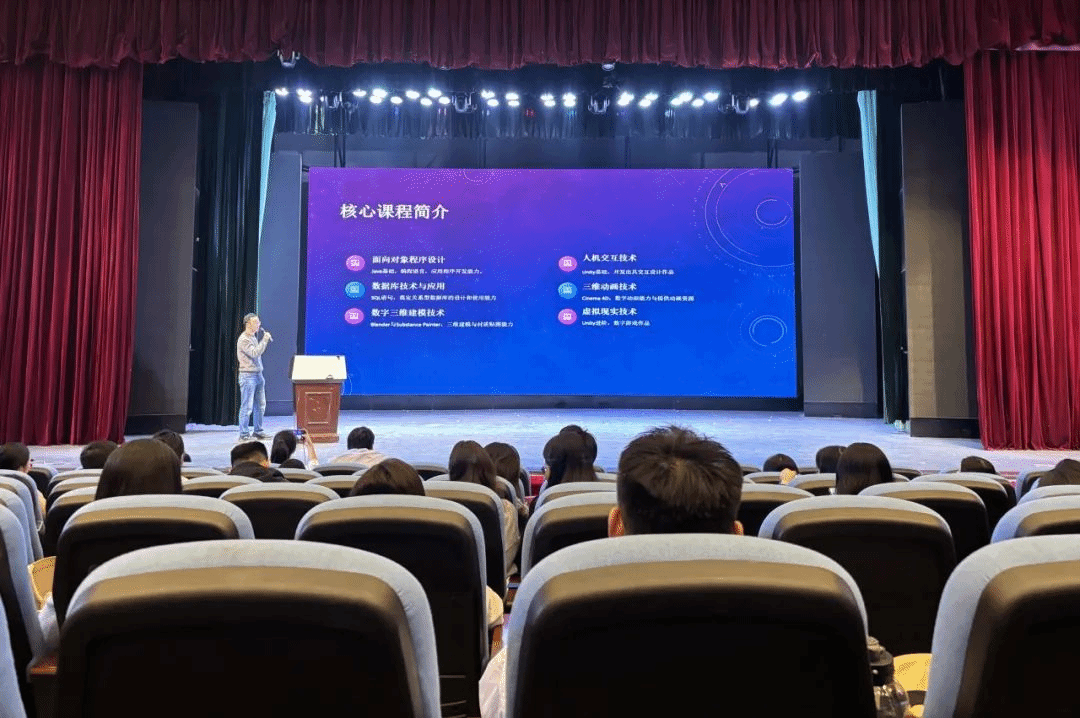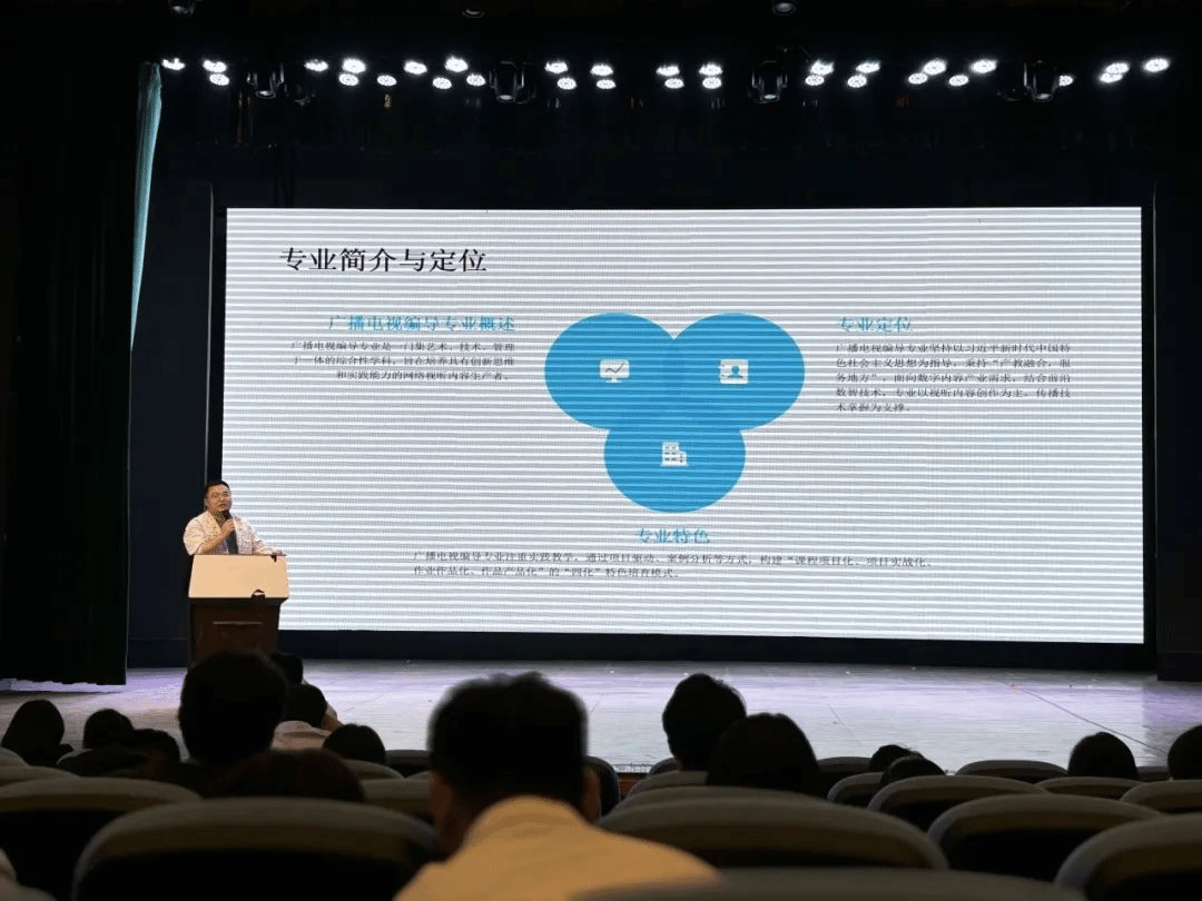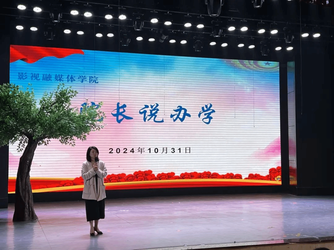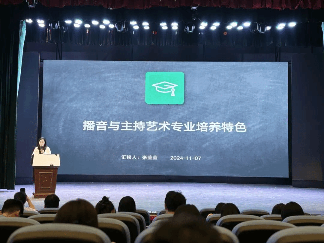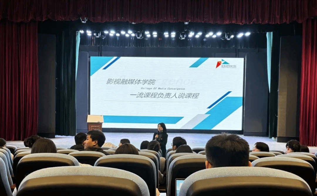 11月7日,学院在小剧场举行了“专业负责人说专业”“课程负责人说课程”活动,表演教研室主任黄智宁、戏剧影视美术设计教研室主任李凤、广播电视编导教研室主任赵辰、播音与主持艺术教研室主任张莹莹、数字媒体技术教研室主任夏京、网络与新媒体教研室主任李越霖等六个教研室主任分别上台,就专业人才培养目标、课程体系建设、实践教学体系、专业优势及就业市场需求等方面为全院教师进行了宣讲。
