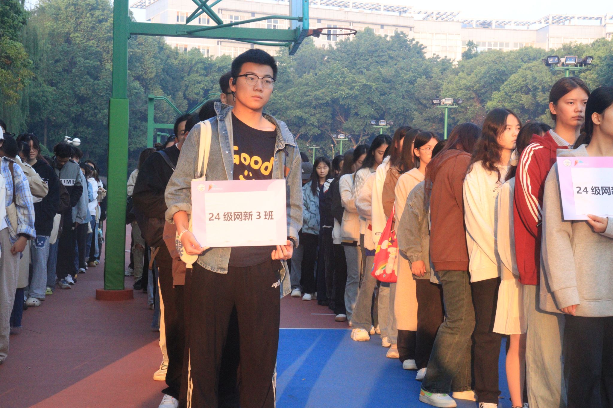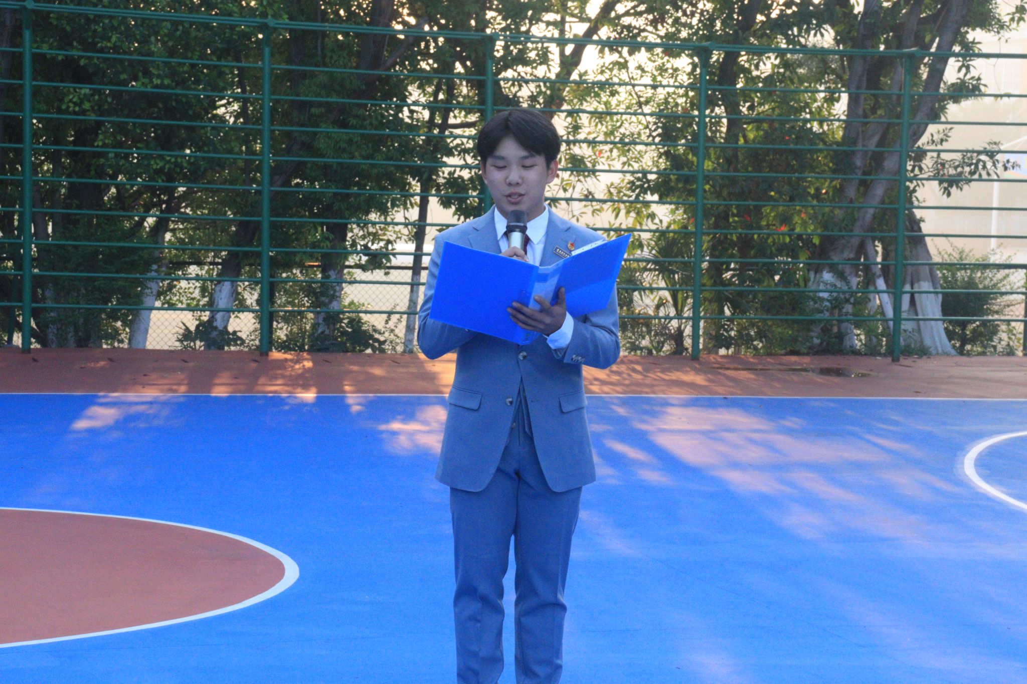在国旗升起后,2024级播音与主持艺术专业3班向聪作为新生代表在国旗下进行了题为《踔厉逐梦想,昂扬向未来》演讲,并号召全体同学以主人翁的姿态,积极参与到评估工作中,从自身做起,从小事做起,为学校的发展贡献自己的力量。
