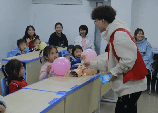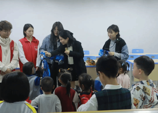 在整个游戏过程中,小朋友们积极配合老师,参与热情极高,现场活动氛围高涨。临近活动的末尾,刘林森老师对活动进行总结,告诉志愿者要密切关注小朋友们的动态,在保证小朋友们安全的前提下开展授课活动。活动的最后,刘林森老师和志愿者们给小朋友们分发开学大礼包并与小朋友们进行合影留恋。