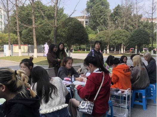 活动主要以免费修眉、美甲为主,为广大女性师生提供便利。活动伊始,志愿者们布置好场地,准备好工具,号召广大师生参与活动。活动过程中,老师和同学自行在网上找美甲样式,与志愿者交流沟通,大家脸上都洋溢着笑容。活动持续5个多小时,初步统计师生美甲50余人,修眉100余人。