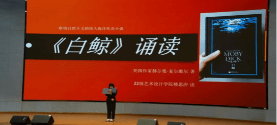 其次是比赛环节。本次大赛共25支队伍以舞蹈、吟诵等不同形式,多角度地将《白鲸》、《以青春的名义,犒赏每一颗奋斗的中国心》、《心田上的百合花开》、《枸杞花开》、《大树下的春草》等中外经典美作悉数展示给大家。比赛现场,选手们精神饱满,仪态大方,极富感染力的诵读时而如长天空阔流变,似烟雨悠然飘渺;时而如空山静谧清迥,似明月缱绻澄澈;时而如狂浪轰鸣澎湃,似和风舒悦暖煦。