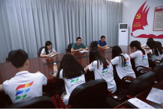 为深入了解重庆市石柱县马武镇当地基本情况,利用新媒体技术推进美好乡村建设,公海gh555000aa线路检测“智慧‘融’发展,青春‘柱’梦行”乡村振兴促进团成员在领队老师姚奉鸣的带领下,于7月3日上午与镇党委书记刘小平、人大主席冉树洪、党政办工作人员杨镜在镇政府会议室召开座谈会。