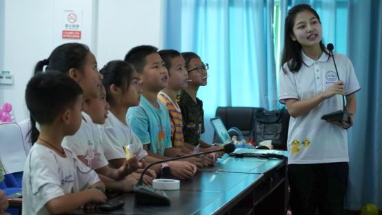 “文小教”课堂分为三个部分进行。其一是口部训练操,宣讲团成员孙雨彤考虑到授课对象为12岁以下的小朋友,将口部操进行了提炼,选择了部分简单易上手且具备代表性的动作,用幽默的、易接受的输出方式加以教授;其二是文字大闯关,孙雨彤同学细心引导着小朋友们,小朋友们快速思考并将文字迅速归类,过程中互动效果较好;其三是绕口令练习,从初级难度到高级难度,小朋友们在学习过程中参与积极性逐渐增强,宣讲团设置了小奖品,激励着小朋友们主动举手作答并争先恐后到台前展示。团队其他成员站立于小朋友们身后关注着不同小朋友的情绪并鼓励每一位小朋友们大胆展示,同时监督互动过程中小朋友们的安全。