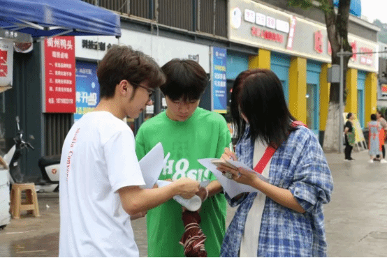 本次宣讲团开展的问卷调查活动得到了社区居民的积极响应和支持。时值酷暑及天气多变时节,“孩子脸”似的天气增加了活动开展的难度。遇到落雨时段,宣讲团只能见缝插针,停留在小范围的商铺门口、廊桥处开展问卷调查。这边,他们通力合作整理问卷;那边,他们耐心指导社区居民如实填写问卷;调研活动的路上,和谐的交谈,欢快的笑声,良好的沟通氛围勾勒了“文明”城市的画面。