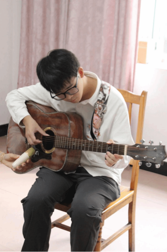 接下来开始由各个社团分别表演节目。吉他社带来弹唱歌曲《梁祝》以及合唱歌曲《但愿人长久》,听到悦耳的音乐后爷爷奶奶们也被音乐感动并给表演的同学们带来阵阵掌声。