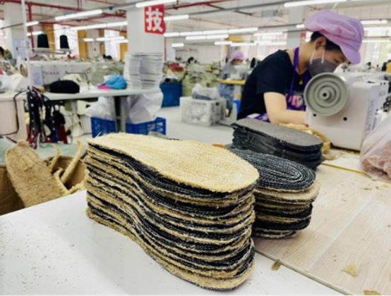 在何航鞋业厂房里,缝纫机踏板的“轰隆声”甚是火热。“家人朋友们,你们看!咱村里产的丝瓜瓤还能做鞋垫…”一台正在直播的手机镜头对准了操作台,主播的一声惊呼引得观众热议纷纷……瞬间,一幅生动的“一二三产业”融合图画跃然眼前。